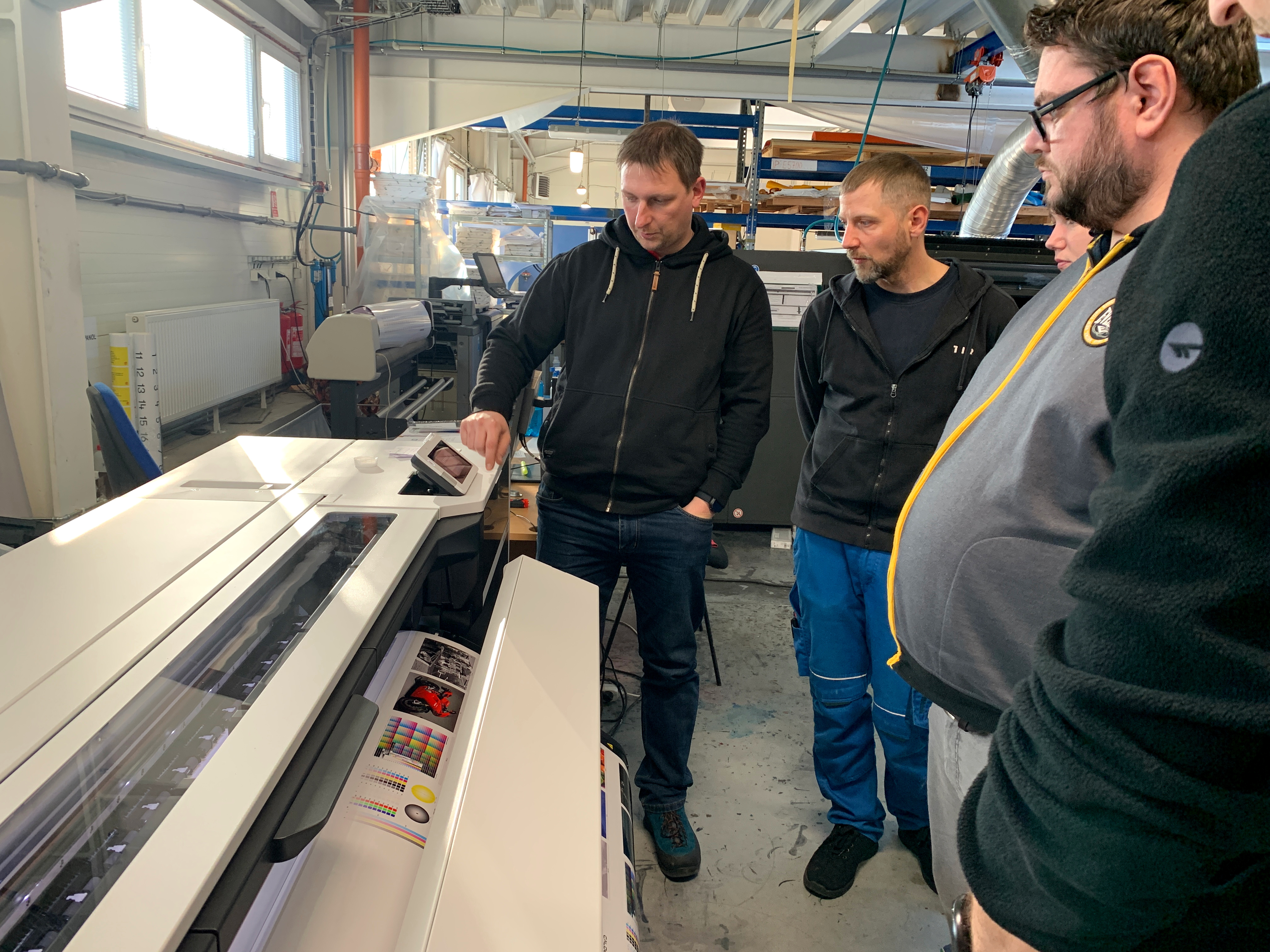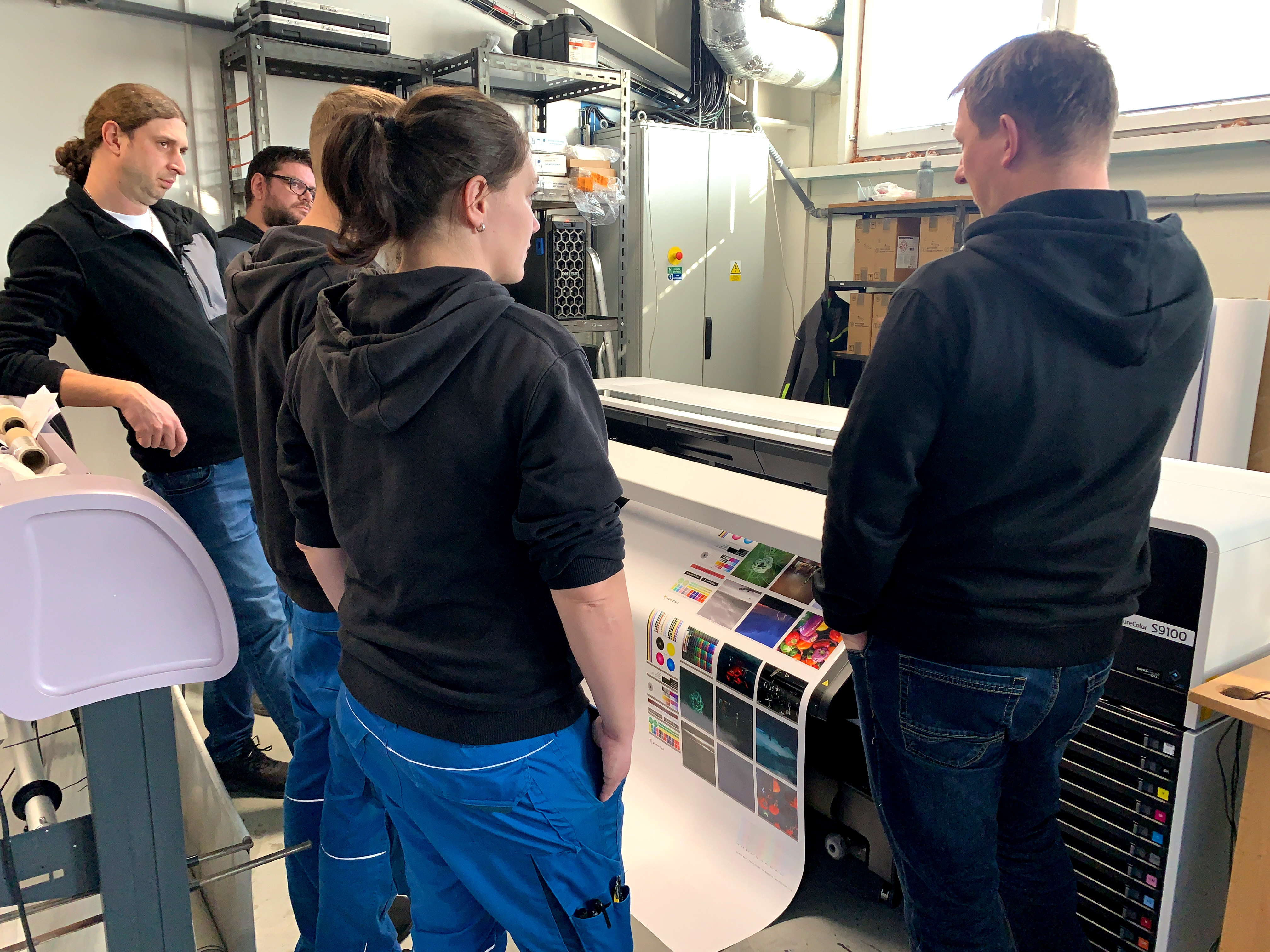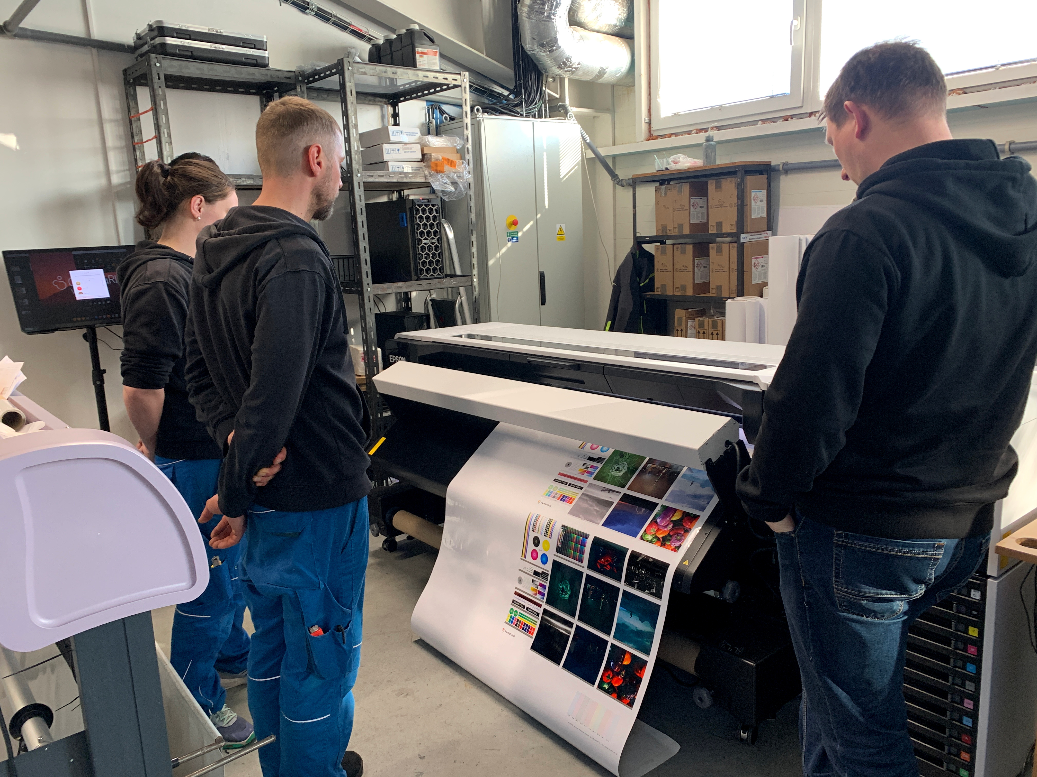 Naši výrobu jsme rozšířili o novou velkoformátovou tiskárnu Epson SC-S9100, která nám umožňuje dosahovat ještě vyšší kvality tisku a rozšířit možnosti zpracování zakázek. Instalace proběhla přímo u nás, včetně odborného zaškolení obsluhy a prvních testovacích tisků, které můžete vidět na přiložených fotografiích.
