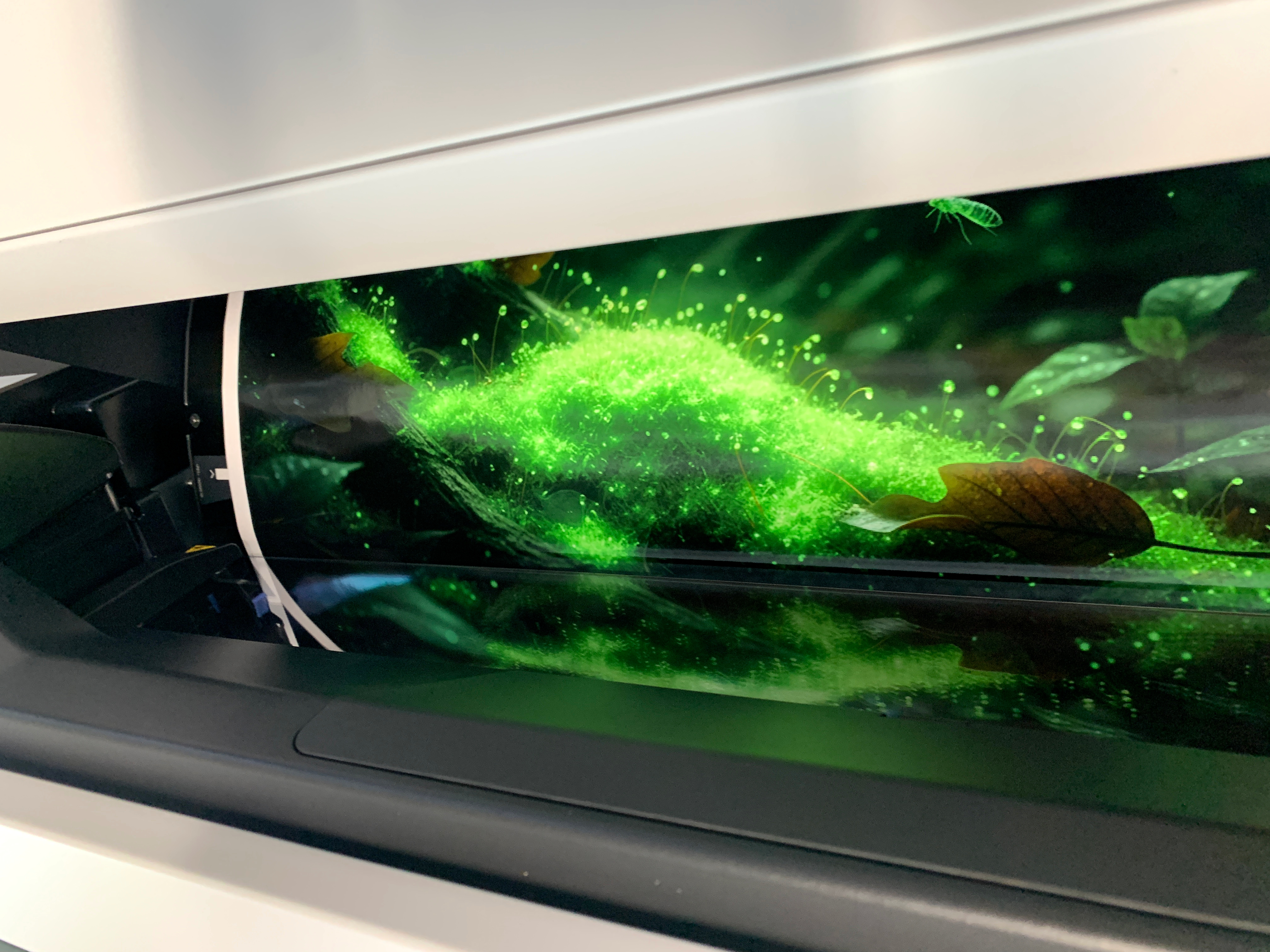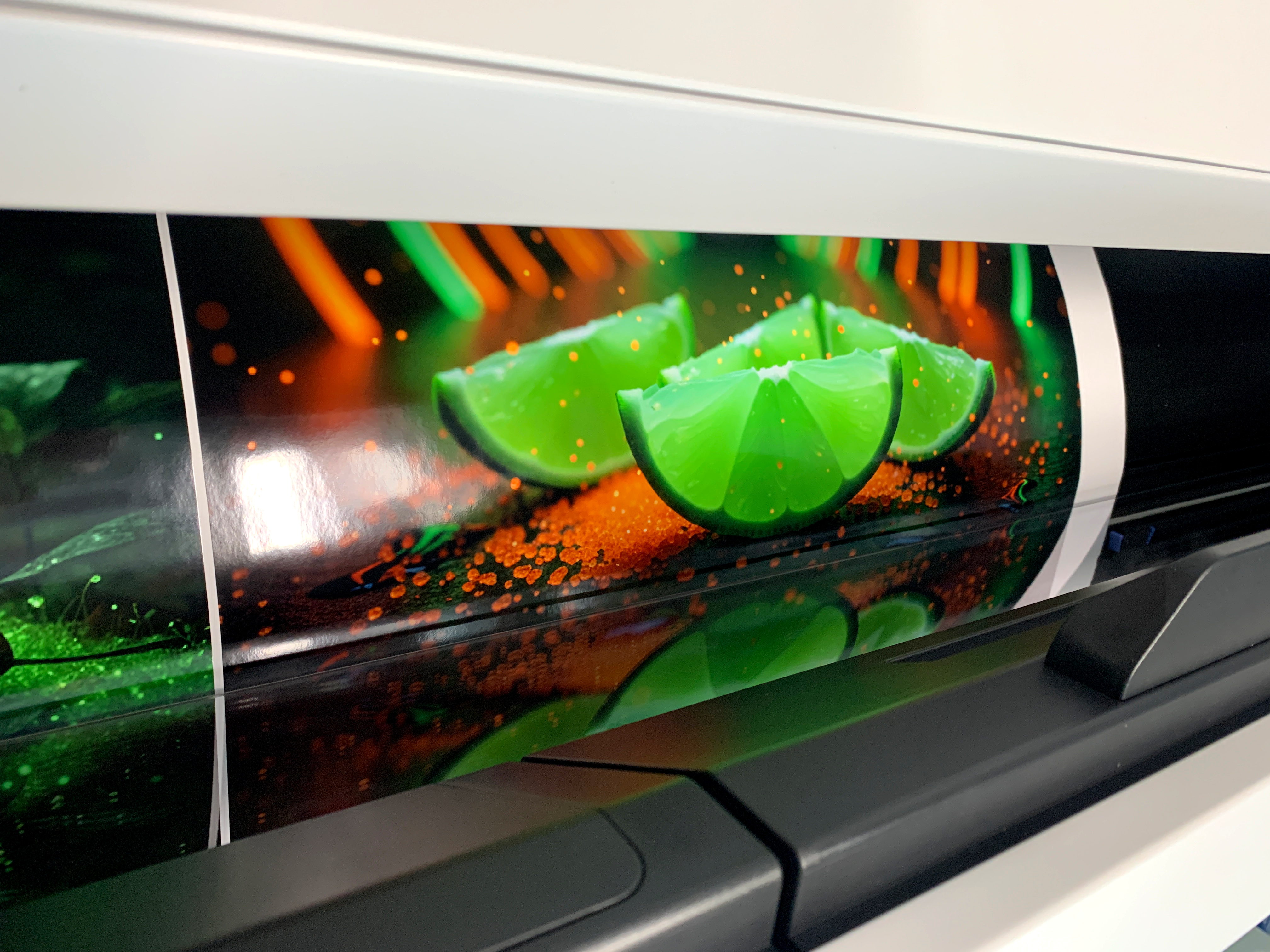 Tiskárna zaujme především sytými barvami, jemnými přechody a precizním vykreslením detailů. Využíváme ji zejména pro potisk plastových samolepek, etiket na nápoje, automobilové polepy a velkoformátový tisk fotografií.